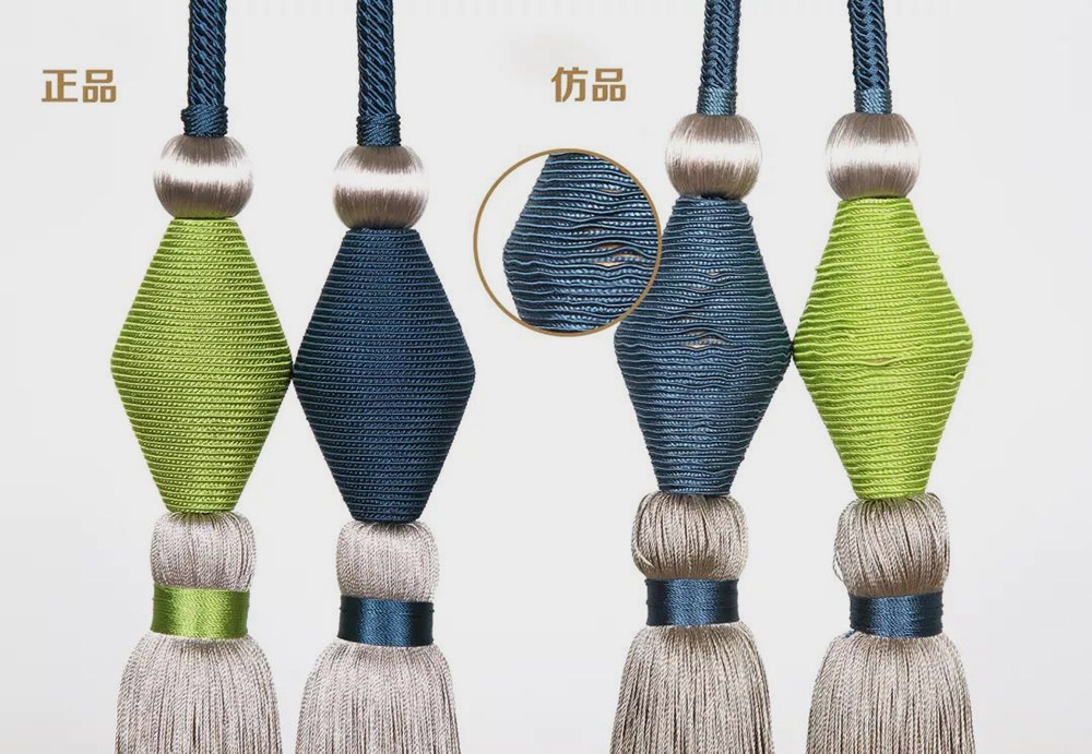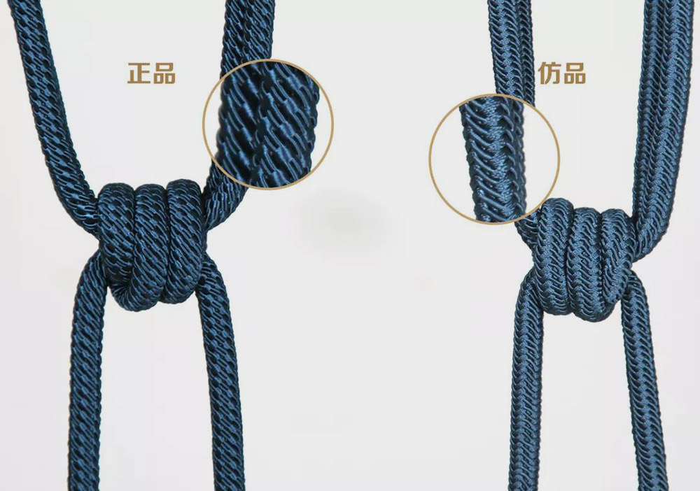 在一些款式上,為體現(xiàn)特定的光澤感和精致度,東立正品使用兩根包繩結(jié)構(gòu),色彩更有表現(xiàn)力,而仿品并不在意細節(jié),只有單跟包繩,色澤暗淡。